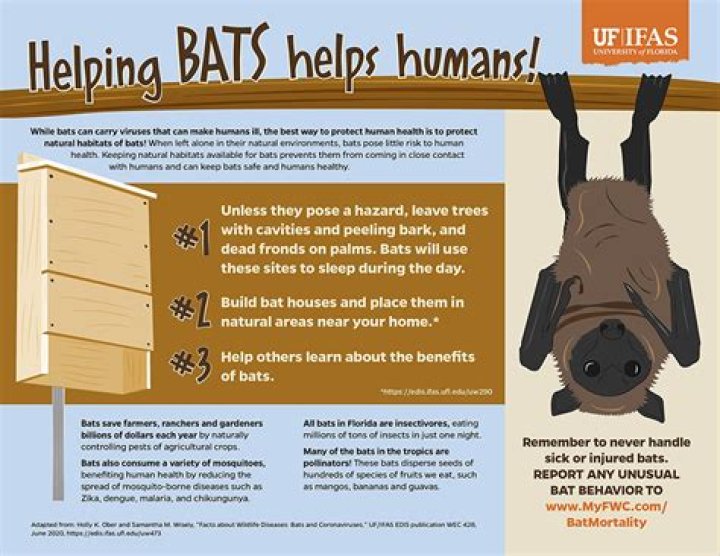 Small signs simply warn not to handle the bats and to seek medical attention if bitten. Like any wild animal, bats may bite in self-defense if handled. But a bat flying overhead isn't likely to give you Ebola or any other disease.Are bats evil?