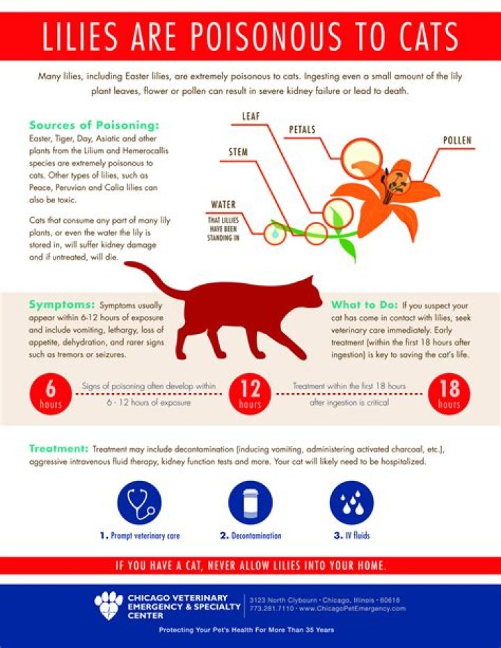 Overview. Despite being popular plants in the home and garden, lilies are extremely poisonous to cats. If your cat eats any part of a lily plant, they are at risk of kidney failure and should see a vet immediately.Are all lilies toxic?