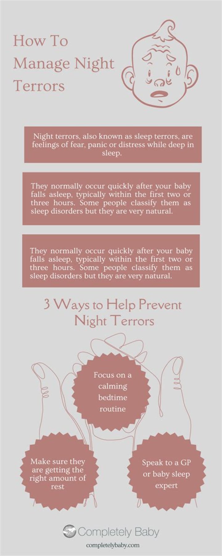 During a night terror, your child may be agitated and restless but you cannot wake them up and you cannot comfort them. Again, they may look wide awake but they're not. They may sit up or run or scream or talk.How is night terrors diagnosed?