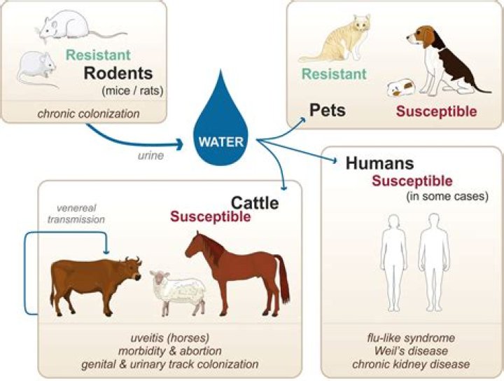 Many wild and domestic animals can be infected with leptospirosis and serve as carriers of the disease to cattle. Leptospirosis is a zoonotic disease, which means that it can be transmitted from animals to humans.