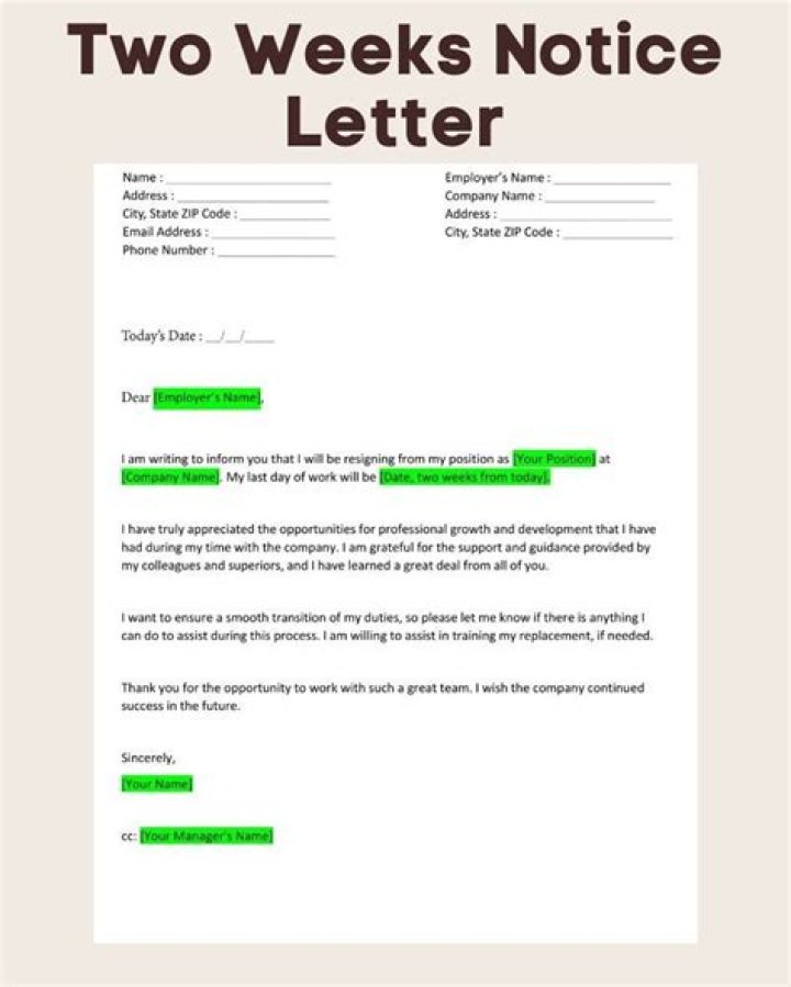 Your employer does not have to accept your two weeks' notice (unless it's in your contract) and can end your employment immediately. Therefore, be prepared to leave your job as soon as you give notice.Can you give 2 weeks notice in the middle of the week?