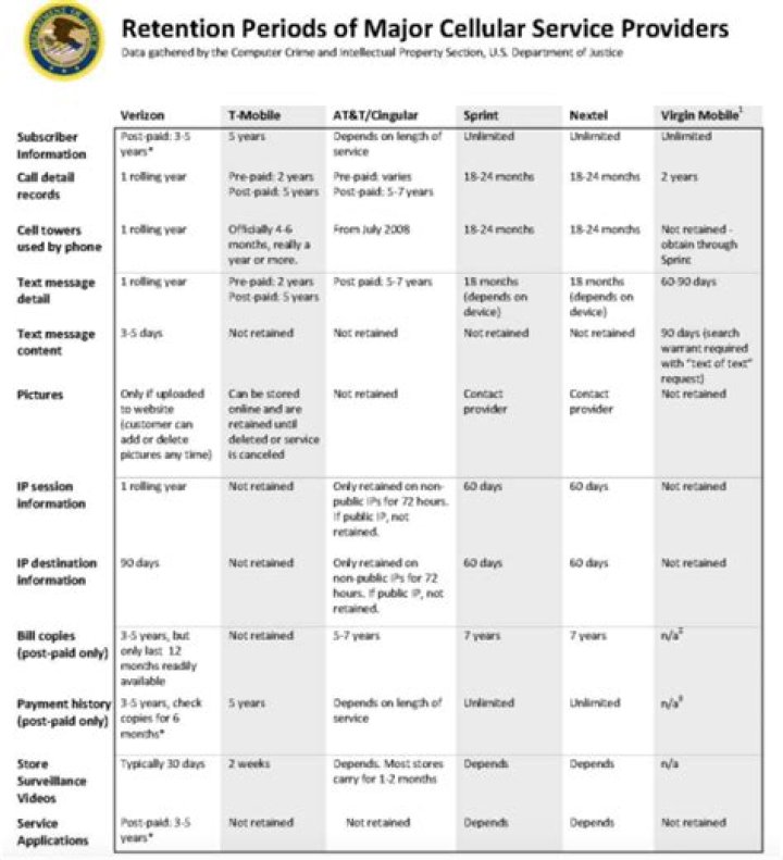 T-Mobile holds call records between seven and 10 years, spokesman Viet Nguyen says. MetroPCS maintains separate records and keeps them two years. Sprint holds call logs 18 months, spokeswoman Stephanie Vinge Walsh says. U.S. Cellular holds records one year, according to spokeswoman Katie Frey.Can police look up old text messages?