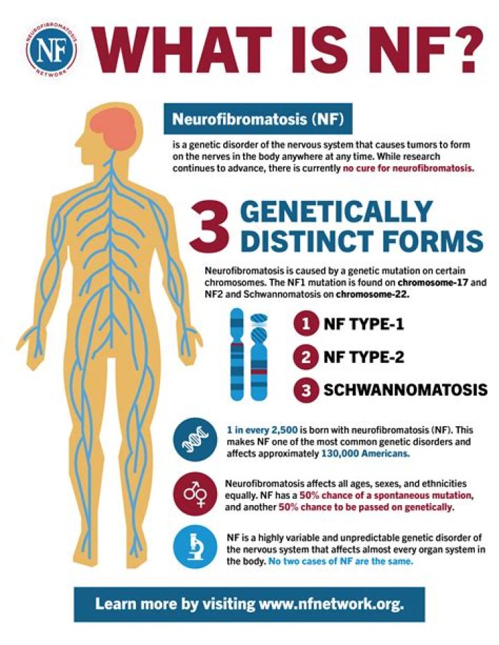 NF1 is also the most common cancer predisposition syndrome. The diagnosis is often made by dermatologists who also operate on cutaneous neurofibroma tumours.