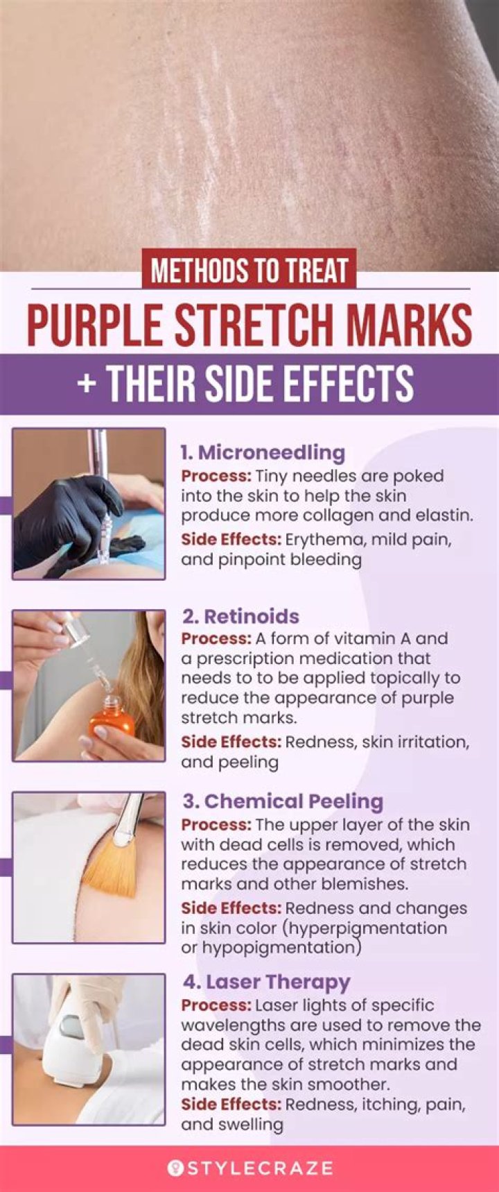 If you've ever wondered why celebs don't have stretch marks, the big secret is lasers and NanaoFractional RF. Stretch marks are formed in the middle layer of the skin, called the dermis, which is the area that determines the shape of the skin.Are purple stretch marks from losing weight?