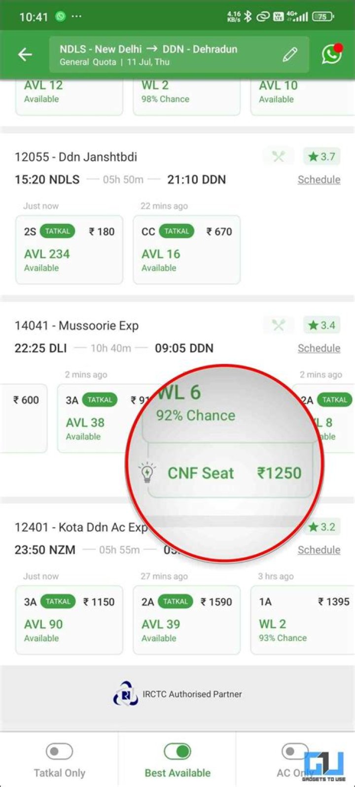 Train has 12 compartments with max of 850 seats ,in that 650 SEATS are filled normally . In which 120 seats will be provide for TATKAL and remaining seats for RAC . Nearly 30–40 seats will be available for RAC ,so till RAC 30–40 you can get a confirmed ticket .Will RAC 75 get confirmed?