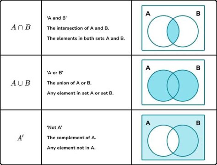 - ∪: Union of two sets. A complete Venn diagram represents the union of two sets.