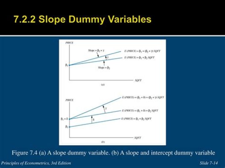Answer and Explanation: An intercept dummy refers to a dummy variable that shifts the constant term, whereas a slope dummy is a dummy variable that adjusts the connection...