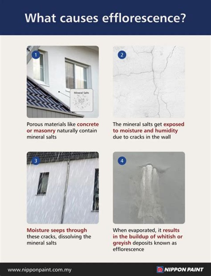 Any efflorescence on the surface must be removed prior to painting as it is regarded as a poor and friable base that prevents paints and coating systems from adhering effectively.