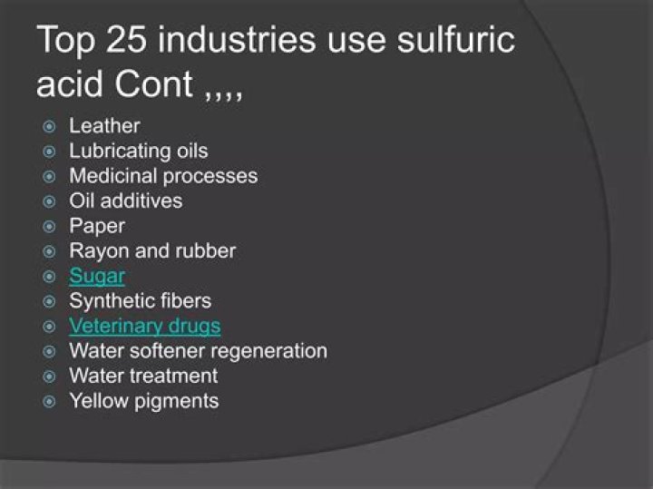 Sulfuric acid is used in many industries. It's used to produce other chemicals, explosives and glue; to refine petroleum; to cure metal; and in lead-based car batteries.