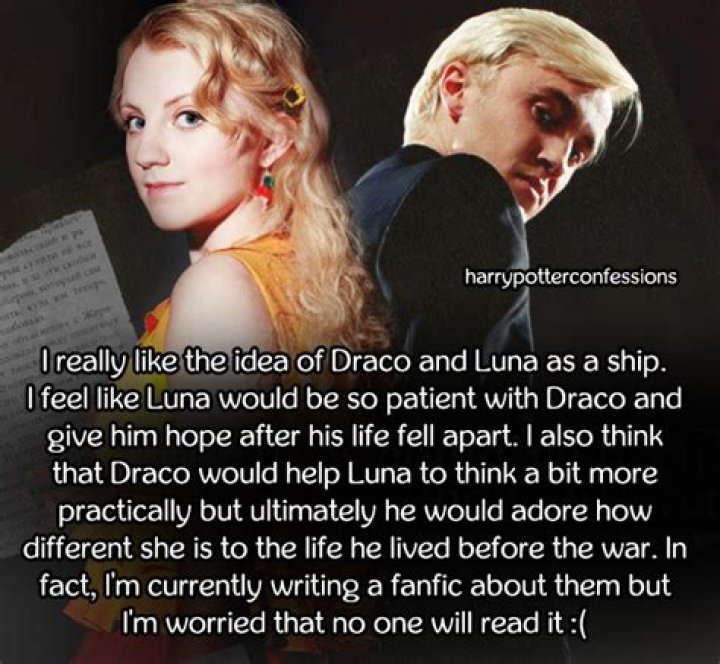 I truly believe Luna and Draco are cousins. Luna's mother has to be Lucius' sister, in my eyes. Hagrid said all Purebloods are related one way or another, and I think he's right. Movie Luna and Draco look so much alike, they just have to be family.