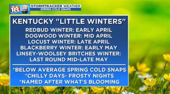 There are six 'Little Winters' and many people here still refer to them. They are typically named according to the trees that are blooming when they occur with the exception of Whippoorwill Winter and Cotton Britches Winter.