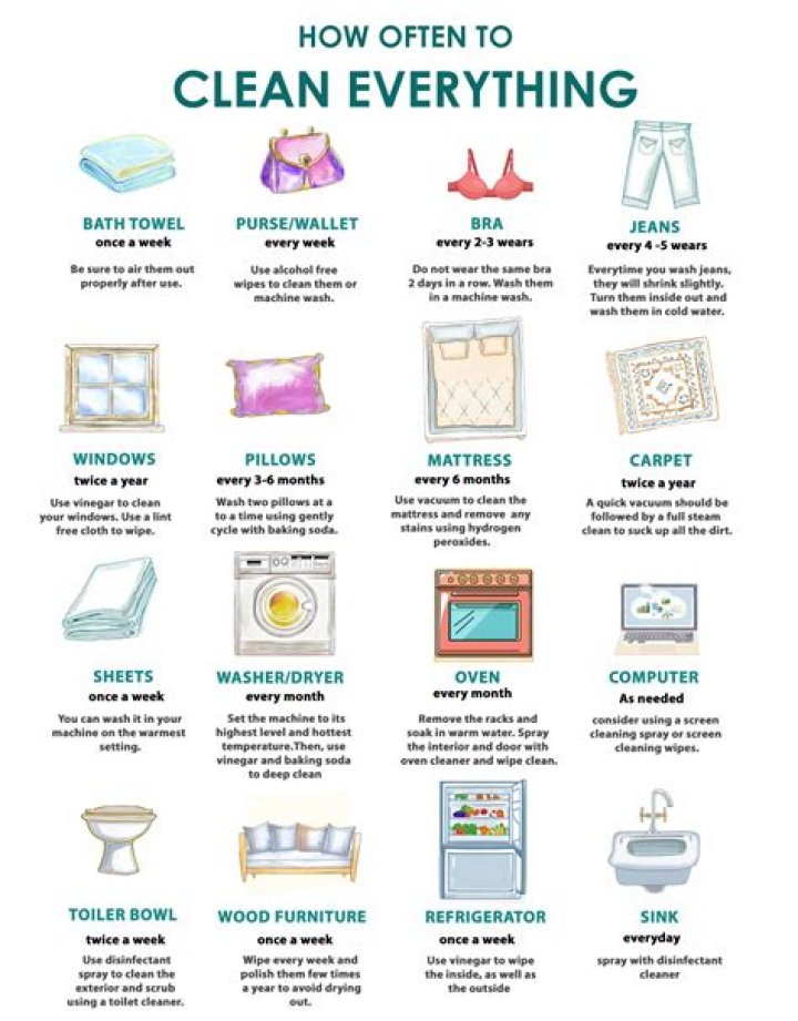 The experts also say that you should clean your deck and outdoor furniture every three to six months, as well as under and behind indoor furniture. Other things you probably aren't doing that frequently include cleaning out your freezer, cleaning inside your fridge, or cleaning your oven.How often should you hoover under furniture?