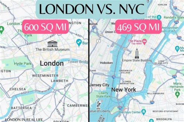 The UK capital city is comparable in population to New York City, totaling around 8.9 million compared to NYC's 8.4 million. As for size, however, the Greater London Area covers around 607 square miles, which is about twice as big as NYC's 302.6 square mile area.Which American city is most like London?