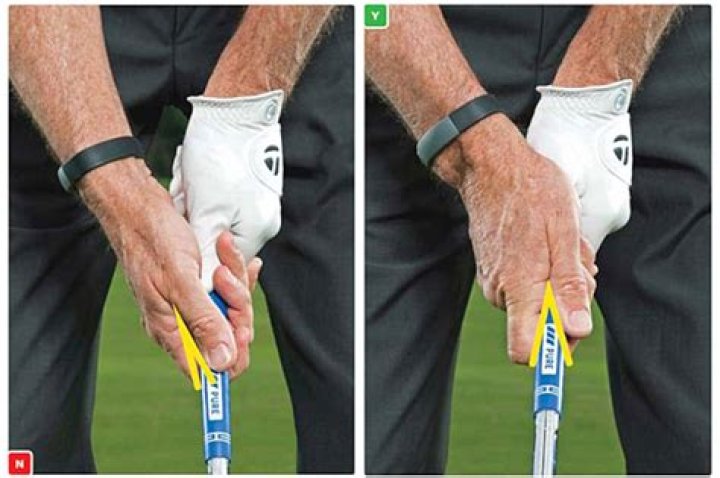He places his thumbs straight down the center of the putter grip. Woods' grip is conducive to an arc-style putting stroke in which the face opens in relation to the target line going back, then closes after impact.What happens if you grip a golf club too tightly?