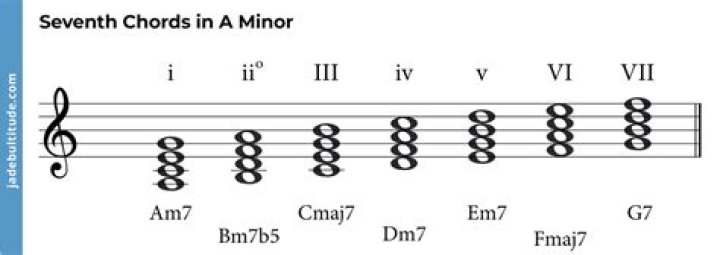While the dominant seventh chord is typically built on the fifth (or dominant) degree of a major scale, the minor seventh chord is built on the second, third, or sixth degree. A minor seventh chord contains the same notes as an added sixth chord.
