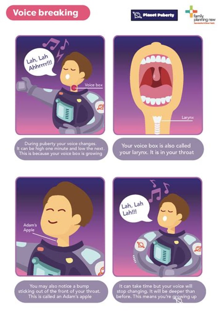 Voice breaking is part of what happens to boys during puberty. Everyone is different, but puberty usually begins between the ages of about 12 and 16.