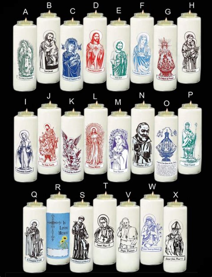 A prayer to the patron saint, holy oil as part of the wax, an Italian prayer coin embedded into the candle, which reveals itself once the candle has burned down. Benefiting St. Jude Children's Research Hospital.