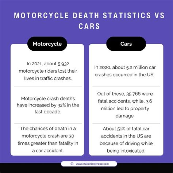 At least eight of the ten states in which the most motorcycle fatalities occurred are traditionally southern or somewhat southern states. Topping the list are Mississippi, Texas, South Carolina, Florida, and Arizona. Mississippi had the highest rate of fatalities, at 14.22 fatalities per 10,000 registered motorcycles.Are motorcycles less maneuverable than cars?