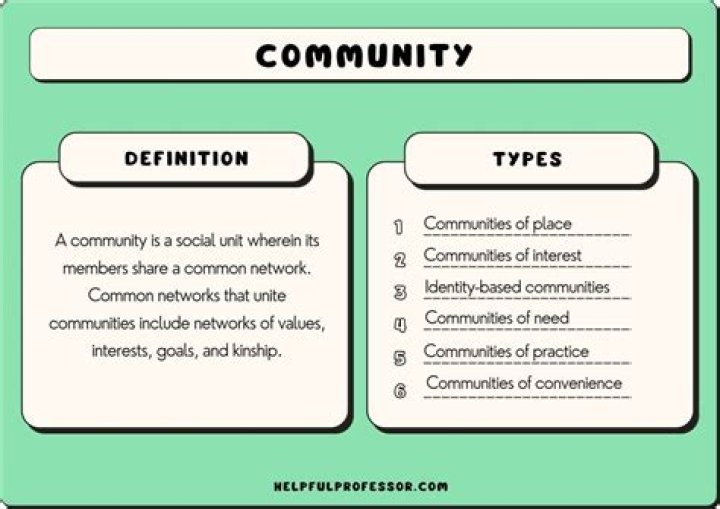 a : the people with common interests living in a particular area broadly : the area itself the problems of a large community. b : a group of people with a common characteristic or interest living together within a larger society a community of retired persons a monastic community.What are examples of social communities?