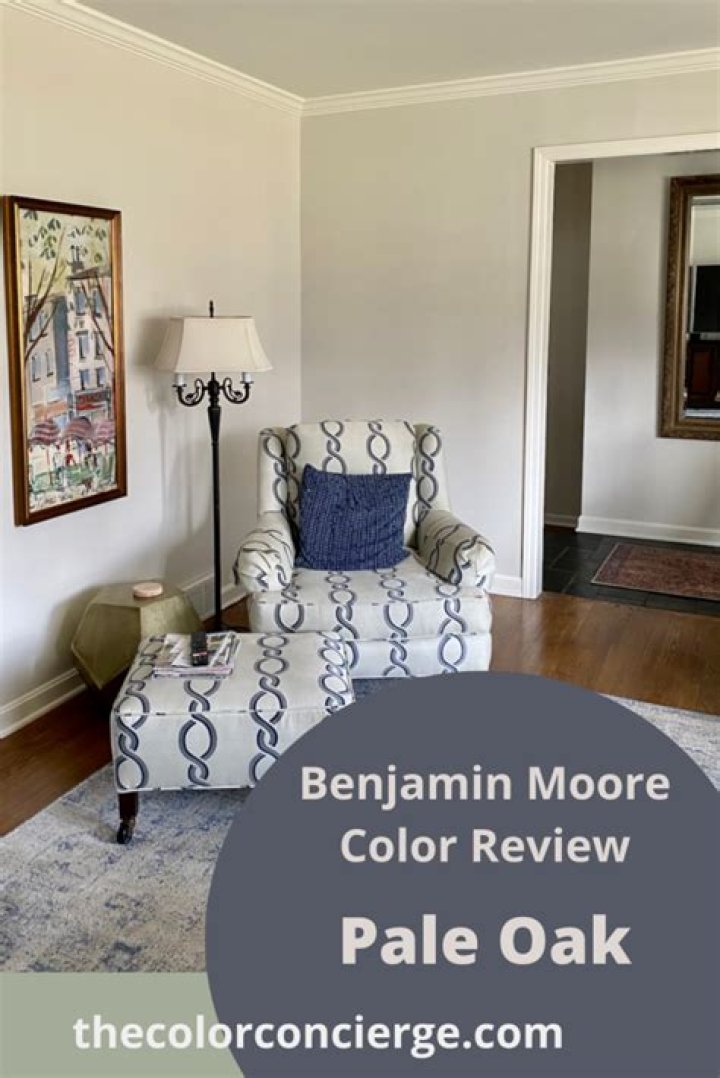 In a balanced quality of light it's going to look like a near neutral warm gray-beige, it could possibly have moments of peachy-pinkish overtones. While others will report that Pale Oak looks purple -ish. That's because of its hue family and because it's a low Chroma color.Is Benjamin Moore pale oak a popular color?