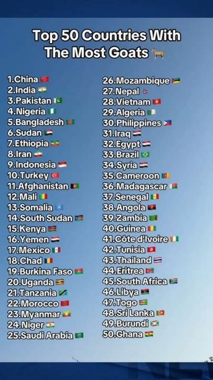 • Nigeria. Nigeria is the 4th biggest goat meat-producing country in the world. ...