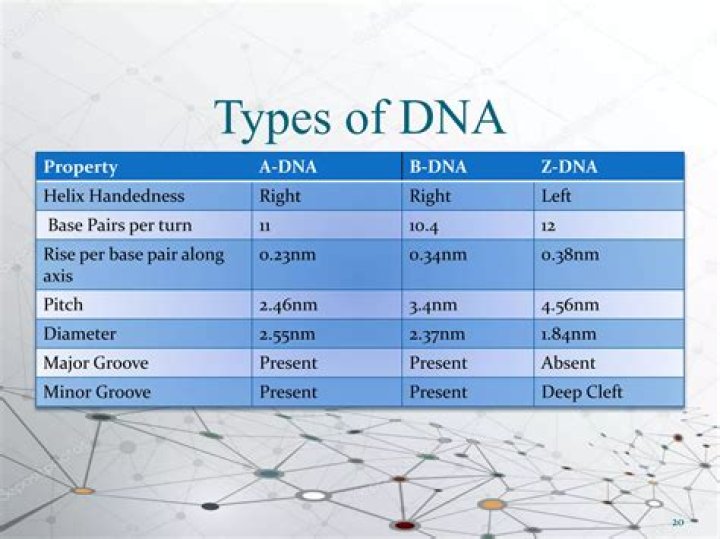 B-DNA refers to the typical form of double helix DNA in which the chains twist up and to the right around the front of the axis of the helix. But, Z-DNA refers to the left-handed uncommon form of double helix DNA in which the chains twist up and to the left around the front of the axis of the helix.What type of DNA is human?