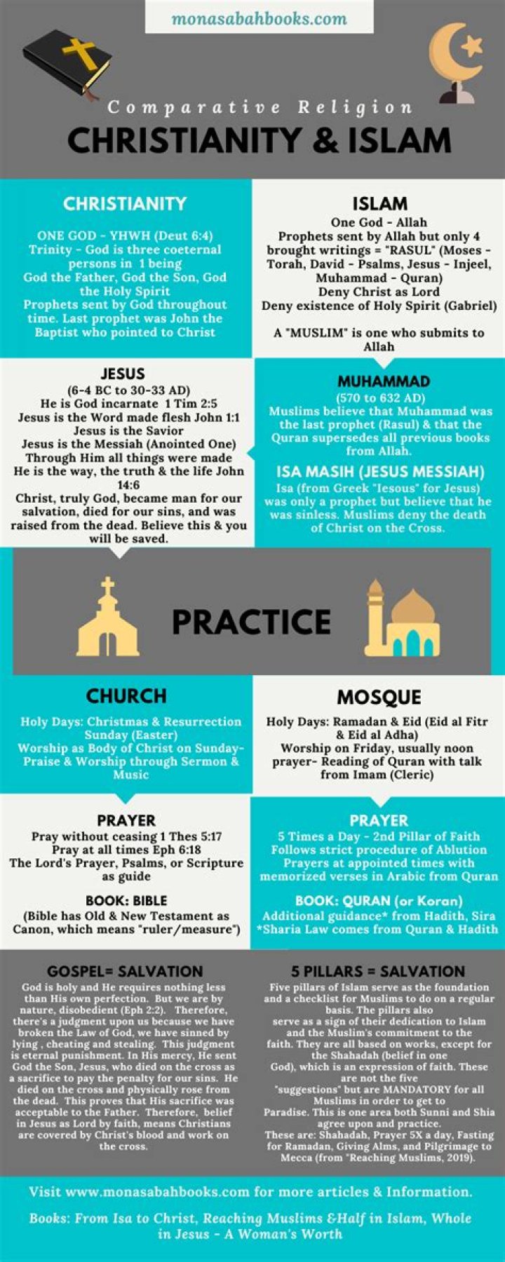 A key difference is that Christianity is founded on the life, teachings, death, and resurrection of Jesus Christ, and those who follow this are called Christians. Whereas, Muslims believe that the word of God and the teachings of Islam are sharedby the prophet Muhammad (Peace Be Upon Him).Is Allah Yahweh?