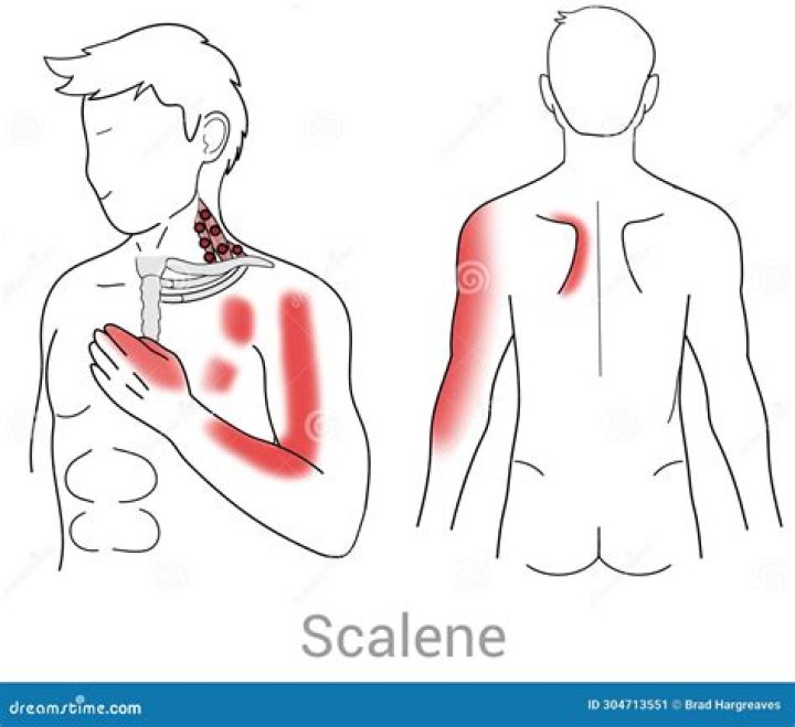 Trigger points in the scalene muscles can refer pain and/or numbness to the shoulder, down the arm to the thumb and index finger, to the chest and also to the upper back between the shoulder blades. This is a huge distribution of pain and numbness that can be coming from 3 small muscles in the neck!How do you sleep with scalene pain?