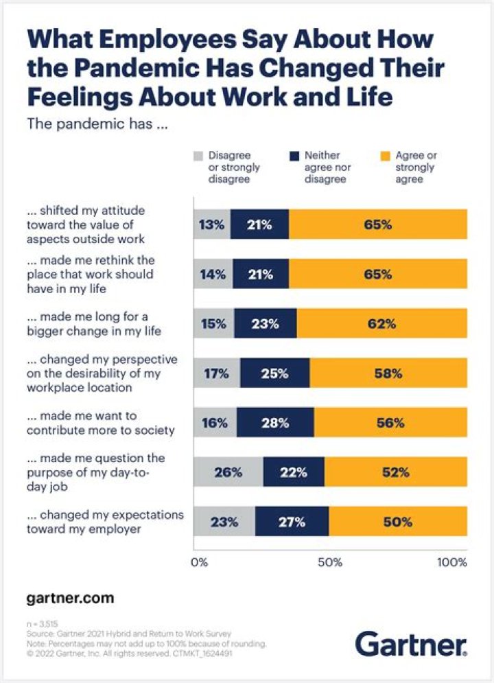 Health benefits, job security, flexible work arrangements and retirement benefits were behind pay, respectively, as the top five reasons employees would move elsewhere. “Some are leaving for a nudge up in pay, but some aren't,” Malcolm said.How long will great resignation last?
