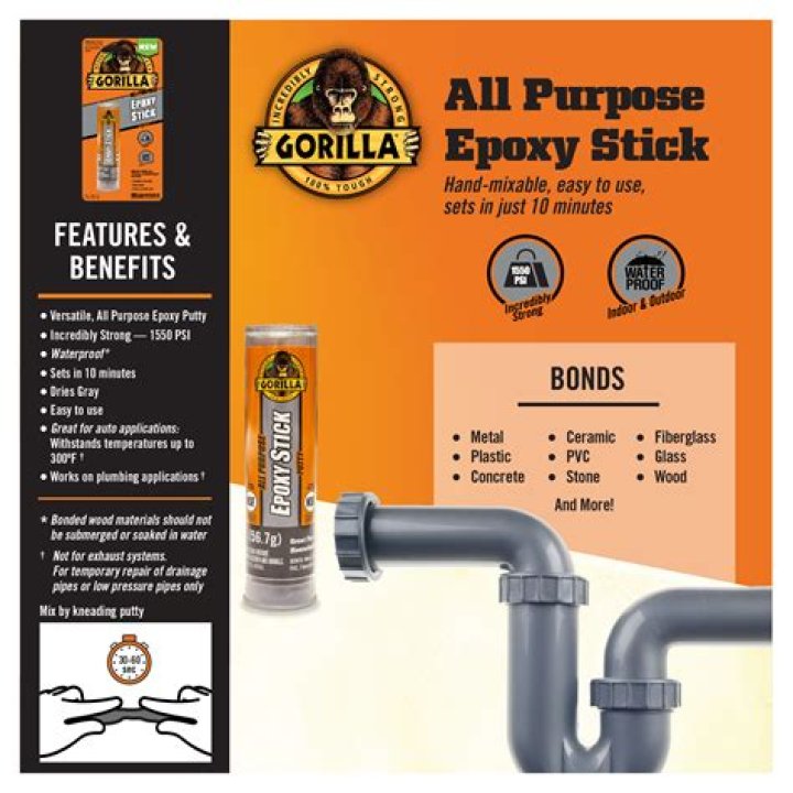 Gorilla Epoxy is water resistant, which means it will resist moderate exposure to water but should not be fully submerged. You can use this adhesive for some light outdoor applications. However, if you need an adhesive that is 100% waterproof, check out our Original Gorilla Glue.
