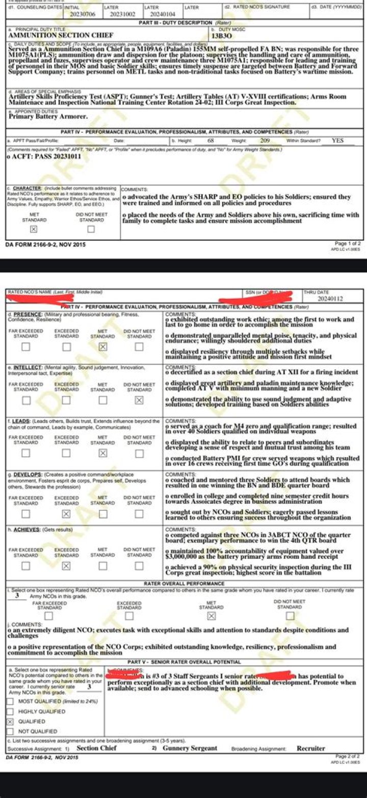 Policy Change: Incorporates the senior rater four-box-check system and senior rater profile label for DA Form 2166-9-2 (SSG – 1SG/MSG) and DA Form 2166-9-3 (CSM/SGM). secondary zone; ahead of peers (Note: Senior raters are limited to 24% of the ratings in a grade to retain the “MOST QUALIFIED” label.)