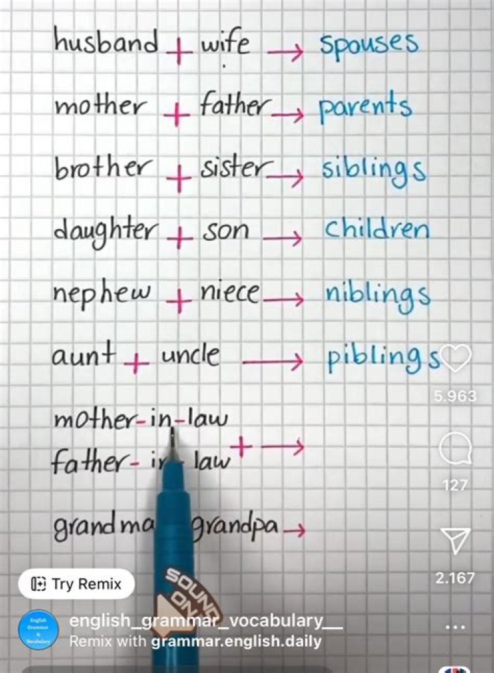 “Pibling” and “parling” (conflations of parent and sibling), “arntul”, “auncle” and “uncee” are being put forward as gender-neutral options for aunt or uncle. For those who have non binary siblings, “nibling” or “quibling” (queer and sibling) are possible options.