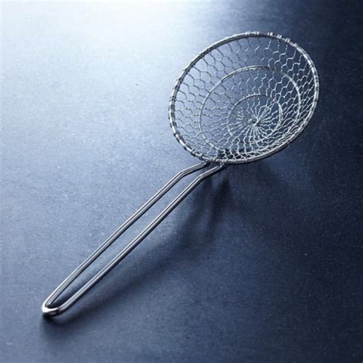 Unlike sieves or strainers, which have fine mesh screens for straining away liquids as food is retrieved, the spider can be used as a strainer for larger pieces of food. However, most often it is used as a skimming tool to add or remove foods from hot liquids such as water or oil.What does a spider strainer look like?