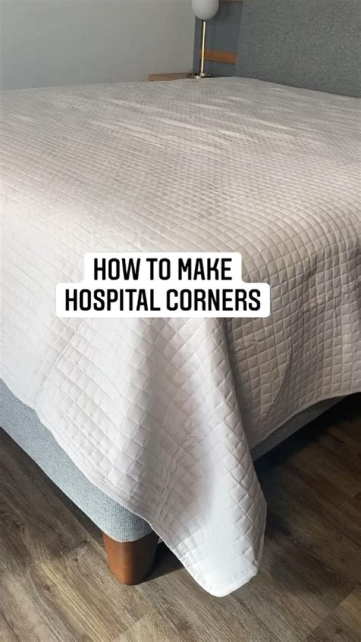 It's called “hospital corners” because it's the way that hospital bed sheets are primarily folded, and it's also apparently the way members of the military make their beds as well. The hospital corner “look” is essentially a beautifully clean and crisp line that runs horizontally down a corner of the mattress.What is a hospital corner called?