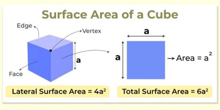 The total surface area of a cube is given by 6 × (side)2. The lateral surface area of a cuboid is given by 2(length + breadth) × height. Similarly, the lateral surface area of a cube of side “a” is equal to 4 × (side)2.