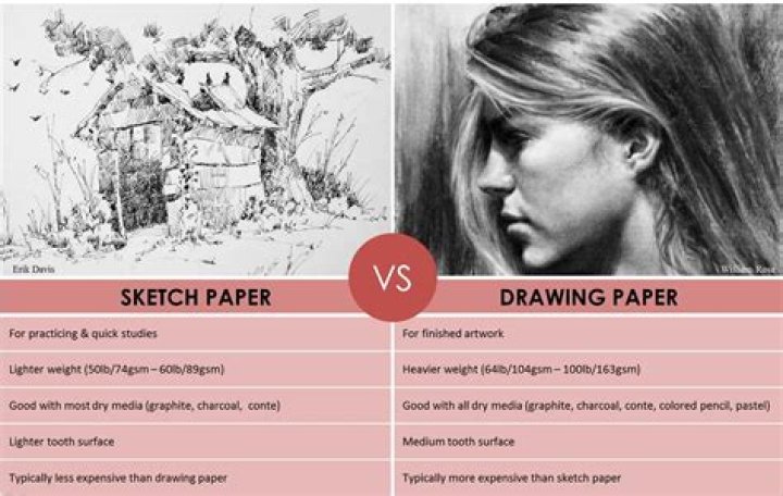 In general, the biggest difference between sketch and drawing paper is that Sketch paper is intended for practicing, experimenting, and quick studies, while drawing paper is intended for finished artwork. Sketch paper is often lighter weight, while drawing paper is conversely a bit heavier in weight.What is a sketch paper?