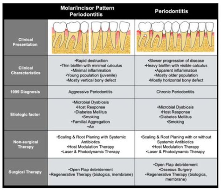 Plaque biofilm and calculus amounts seem to vary and there is no set pattern that distinguishes chronic from aggressive periodontitis. 1. The global and national prevalence of aggressive periodontitis is much lower than chronic periodontitis, and seems to range from 1% to 15% in individuals younger than 35 years of age ...Can periodontitis be stopped from progressing?