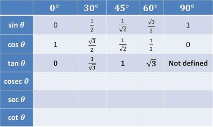 • Tan 90° = Sin 90° / Cos 90° = 1 / 0 = Not defined.