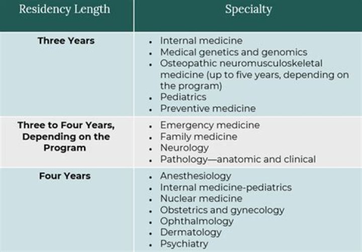 The length of residency depends mostly on the field a graduate chooses to take. Medical specialties such as family medicine and internal medicine often requires three years, whereas surgery usually requires a minimum of five, and neurological surgery is the longest at seven years.