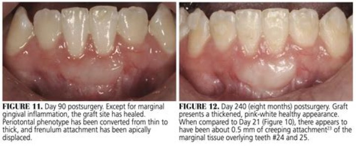 For soft tissue “gum” grafts, the site(s) may appear white during the healing process (up to 2 weeks), this is normal and not a sign of infection. The tissue will change to a pink color as it heals.What is the success rate of gum grafting?