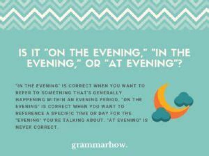 ''In the evening” or “during the evening” are both correct. Evening is the period just before sunset and before midnight (the time varies). Night-time is after the evening and before dawn. We normally say “good night” just before going to bed, and “at night” is another common expression in English.