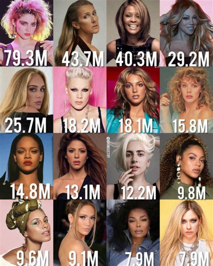 The Bajan artist has 257.6 million certified record sales, topping Mariah Carey's sales (137.3 million certified) by over 120 million, Whitney Houston's sales (114.9 million certified) by over 142 million, Lady Gaga's sales (102.1 million certified) by over 150 million, and Beyonce's sales (83.3 million certified) by ...Which female singer has the most Top 10 hits?