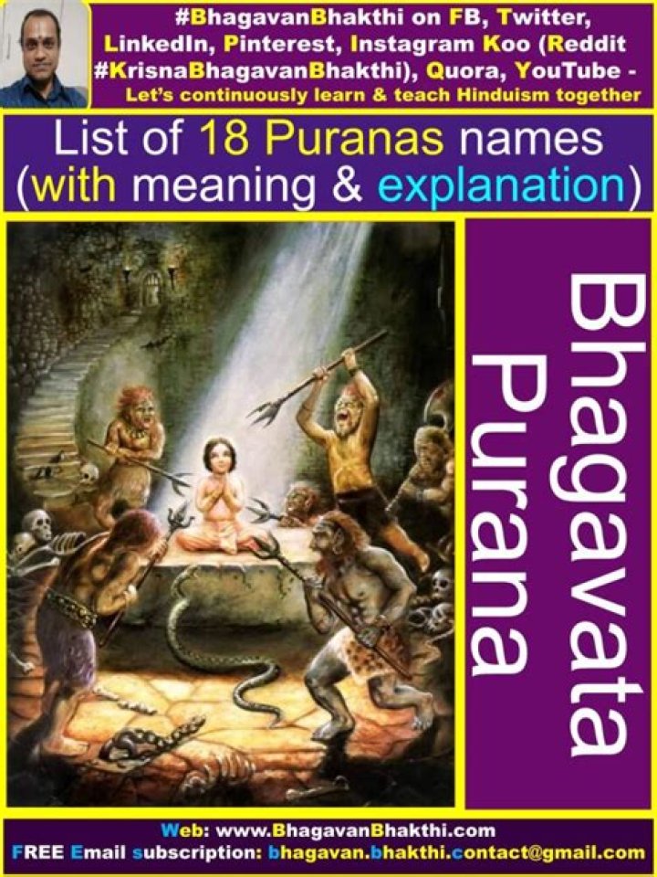 Puranas. Vyasa is also credited with the writing of the eighteen major Purāṇas, which are works of Indian literature that cover an encyclopedic range of topics covering various scriptures. He narrated the Devi-Bhagavata Purana to Parikshit's son Janamejaya.What is the name of 18 Puranas?