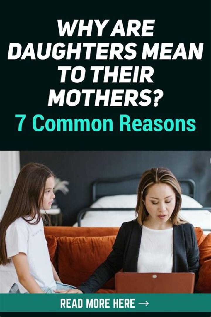 The mother may try to make the daughter feel guilty for being different and may consistently try to change her. This can lead the daughter to feel that they are often disappointing their mother and often trying to please without success. This can lead to arguments, resentment and overall an unhealthy relationship.How do you deal with a cruel mother?