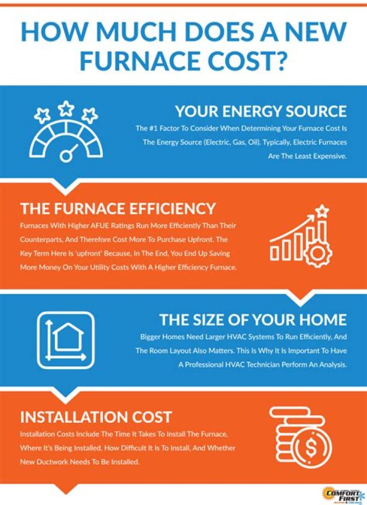 But the average cost per unit can range anywhere from $2,672 - $6,575. The national average is $4,820 - $9,350 for a full furnace installation. This includes the furnace itself, labor fees, ductwork, removal, and disposal of the old furnace, as well as other installation costs or upgrades included.What is the typical cost of a new furnace?